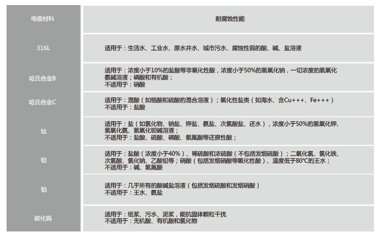 电磁流量计在选型的时间都离不开电极材质与衬里材质的选型,为了可以更有效的选择满足现场工况的电磁流量计,可以根据以下参数来确认,如下图所示: